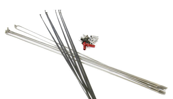 Kits include 2 front spokes, 2 rear drive side spokes, 2 rear non-drive side spokes and 6 nipples. Spokes are black.