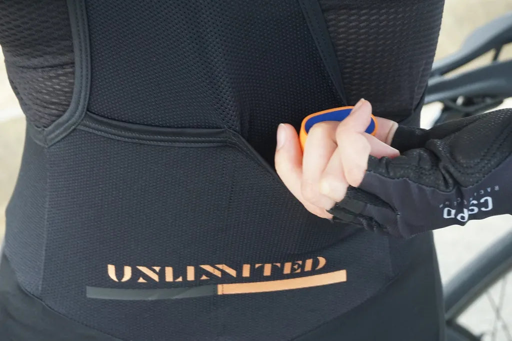 - 2 mesh rear pockets built into mesh bib straps