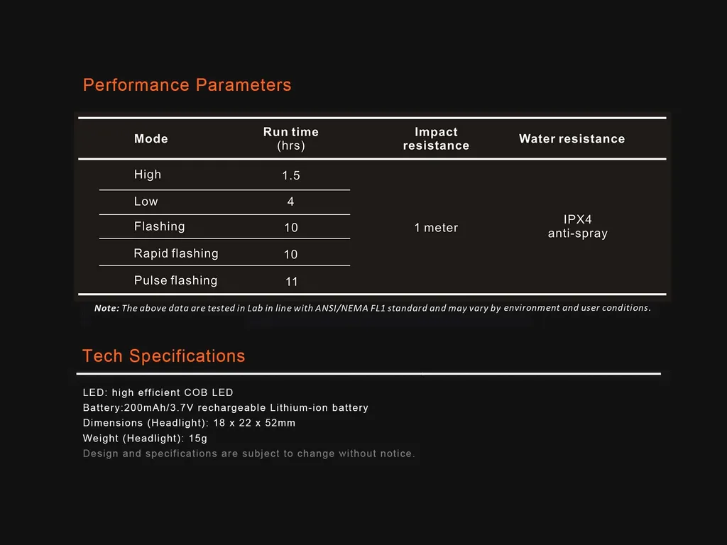- Weight (light unit): 15g