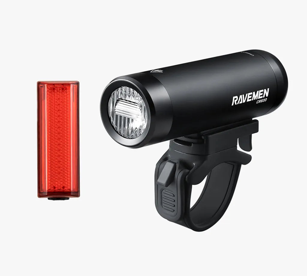 CR600 + TR20 light set for your rides. FEATURES CR600 Anti-glare lens with T-shaped beam, providing close-range flood light and long-distance spotlight Extending battery runtime by...